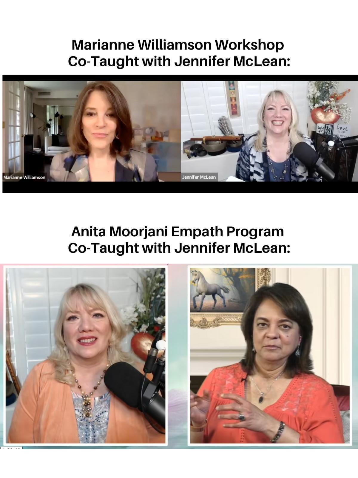 Jennifer has co-taught programs offering the healing component to workshops and programs with renowned thought leader Marianne Williamson, and multiple New York Time bestselling author  and near death survivor Anita Moorjani, as well as Conversations With God creator Neale Donald Walsch,  and was invited to teach on The Shift Network.